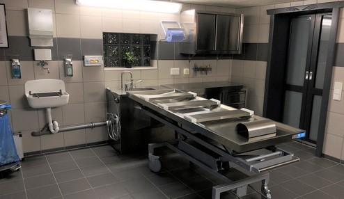 Die Aufbewahrung des Sarges erfolgt in eigenen Klimaräumen. Zusätzlich verfügen wir über einen Hygieneraum zur Versorgung Verstorbener nach DIN 15017.